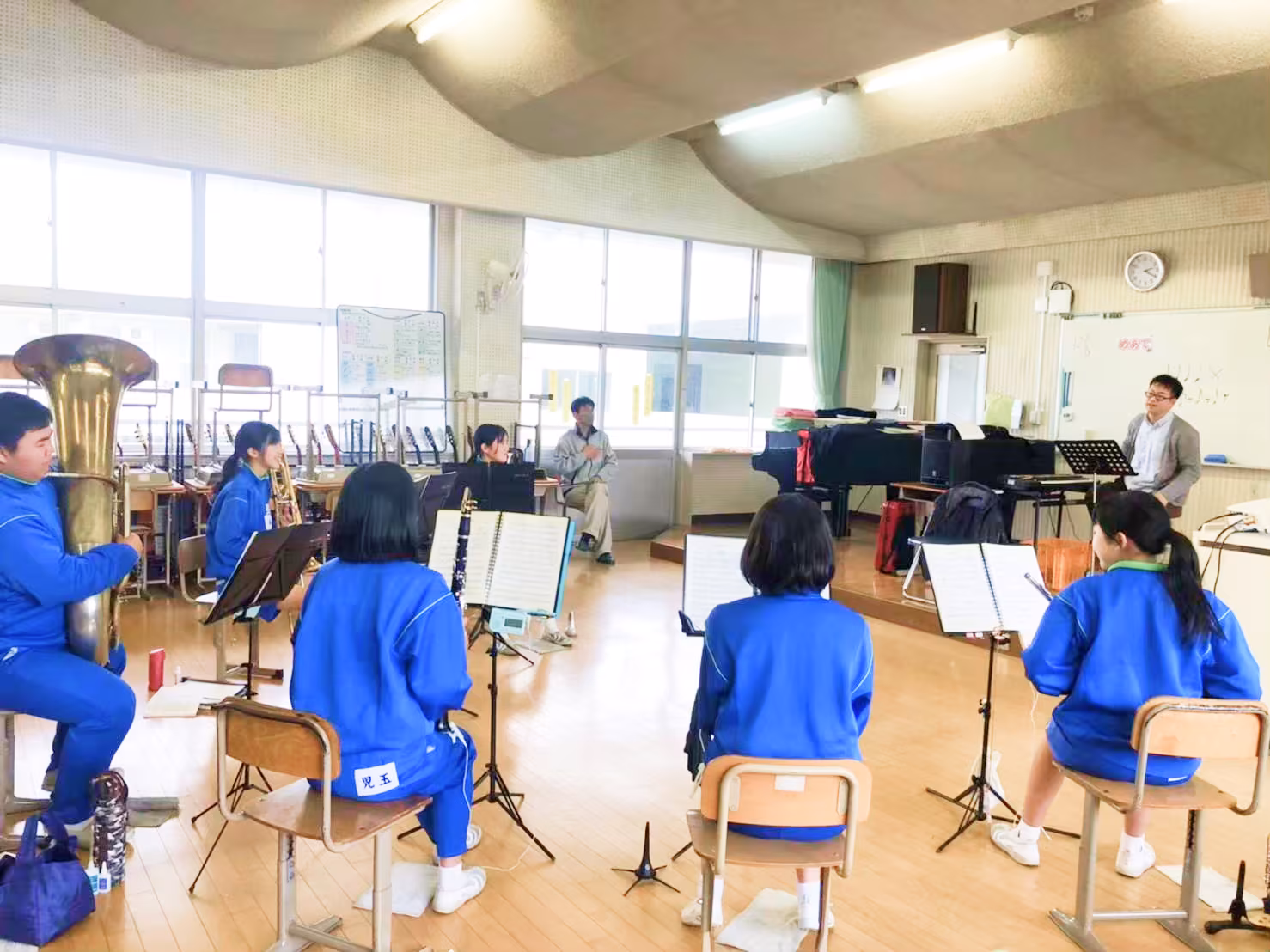 中学校吹奏楽部の外部講師としてレッスンをお願いしています。パートレッスンでは、 1年生から3年生まで一人ひとりに合った丁寧な指導 をしてくださいます。全体合奏でも、専門的な内容を分かりやすく、楽しく教えてくださっています。生徒達が 自分たちの演奏の変化を実感できるよう 指導してくださっており、部員一同、大変信頼しています!